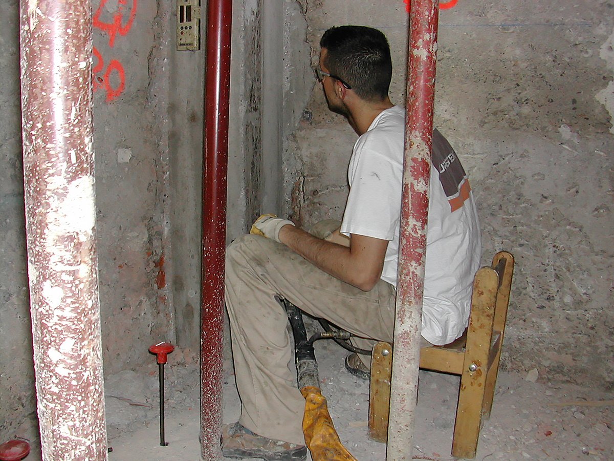Abbiamo costantemente monitorato i lavori di consolidamento delle fondazioni con l’ausilio di un sistema laser sensibile a variazioni di 1 mm. Le prove penetrometriche comparative, realizzate prima e dopo l’intervento, hanno evidenziato il netto miglioramento dei parametri di rigidezza del terreno. In totale abbiamo consolidato il terreno sottostante 4 travi di fondazione per 28 ml e rinforzato il fronte di scavo per 15 ml circa. La durata del cantiere è stata di 3 giorni lavorativi.