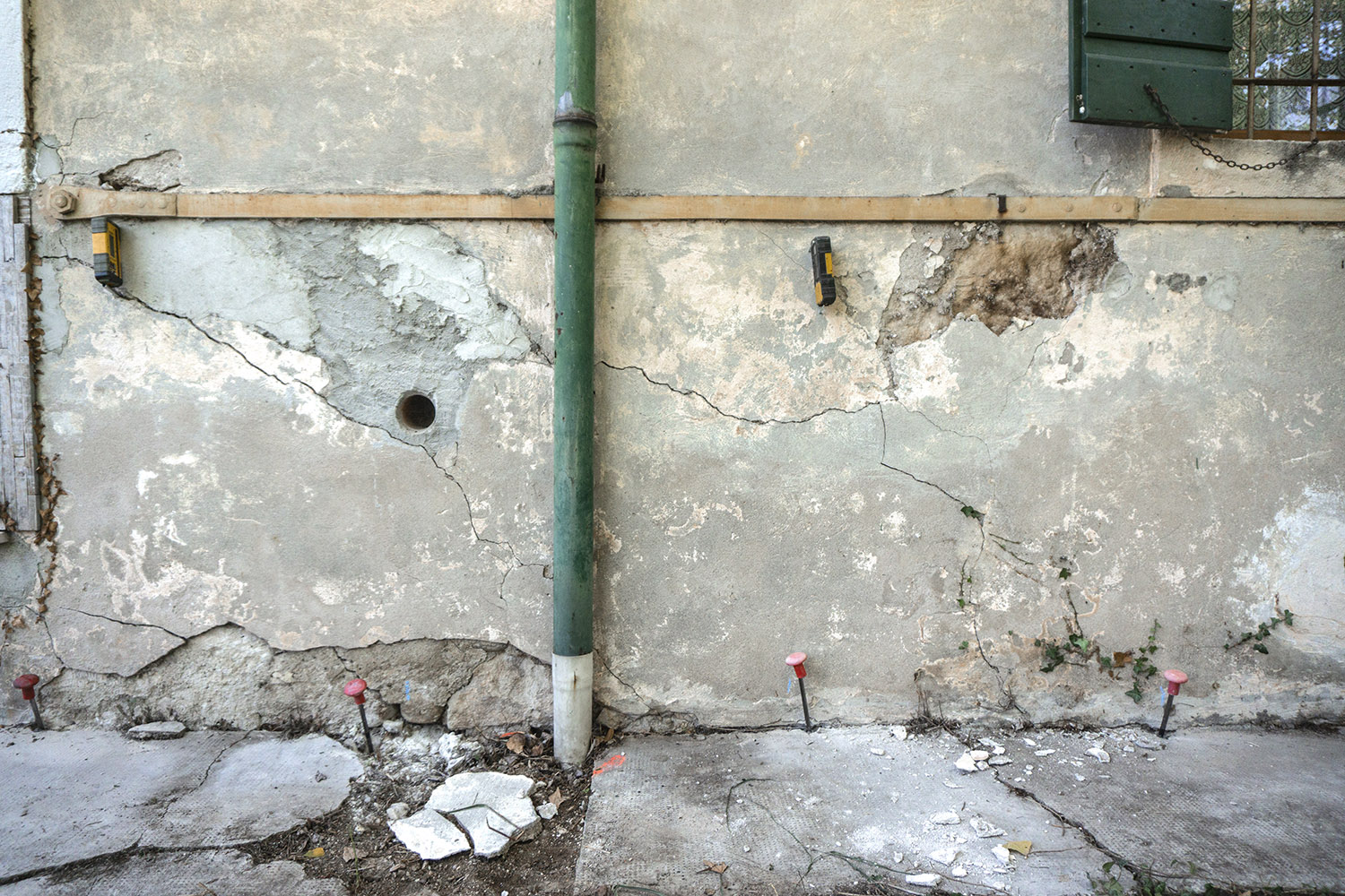 Causa del cedimento è il terreno di fondazione scarsamente addensato e soggetto a fenomeni di ritiro e rigonfiamento.