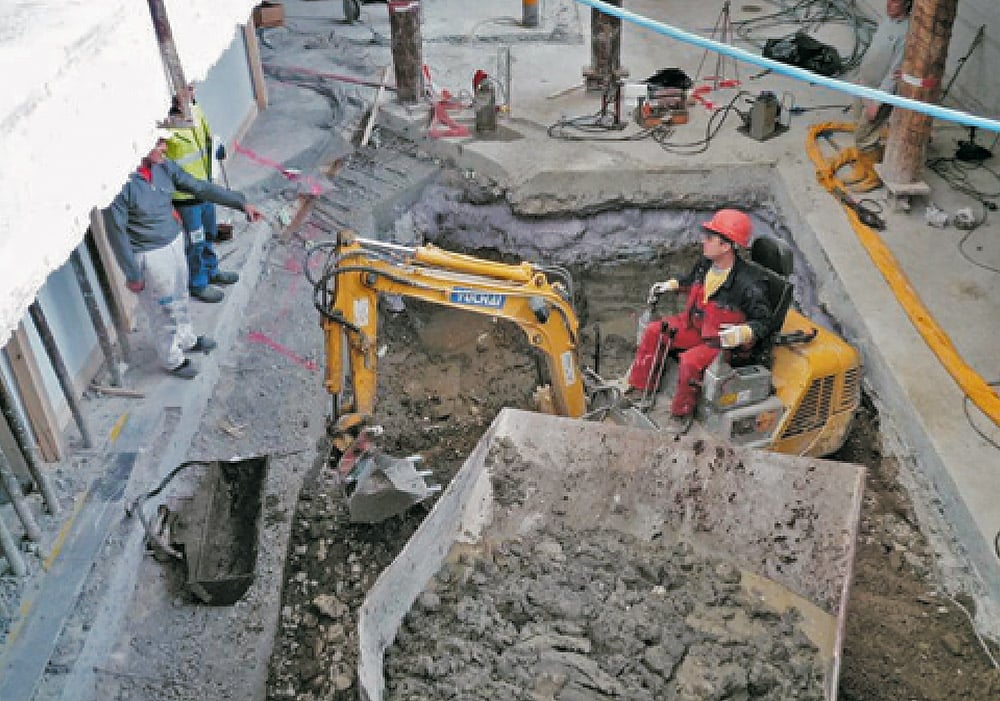 Per la costruzione della nuova fossa del montacarichi si doveva realizzare uno scavo di oltre 2 metri di profondità. Data la presenza di una falda superficiale, appena sotto l’intradosso della platea di fondazione, era necessario ridurre fortemente la permeabilità del terreno per contenere al massimo le infiltrazioni d’acqua.